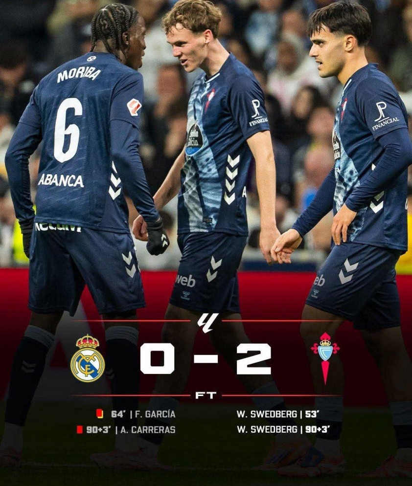 Rắc rối chưa dừng lại. Đến phút 91, hậu vệ trái Alvaro Carreras nhận thẻ vàng, và chỉ một phút sau anh cũng bị truất quyền thi đấu. Sau đó, Endrick nổi nóng với trọng tài bàn sau tình huống Carreras bị đuổi khiến Real Madrid nhận thẻ đỏ thứ 3. Đây là trận đấu đáng quên với Los Blancos. Williot Swedberg trở thành người hùng của Celta Vigo khi lập cú đúp, đồng thời nhận trận thua thứ 2 sau 16 vòng đầu mùa.