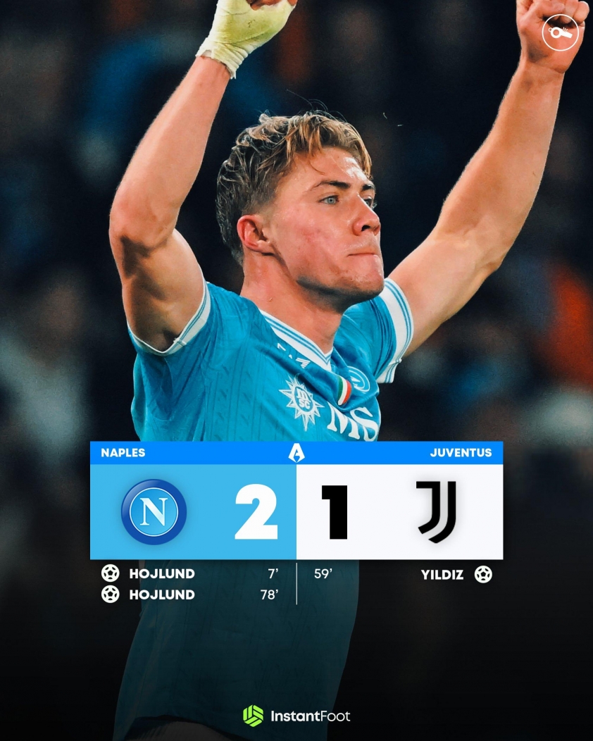 Trở thành người hùng tại sân Diego Armando Maradona, Hojlund chấm dứt chuỗi hai tháng tịt ngòi bằng màn trình diễn bùng nổ. Anh ghi bàn trong cả hai hiệp, qua đó giúp Napoli đánh bại Juventus 2-1, xen giữa đó là pha gỡ hòa tạm thời của Kenan Yildiz.