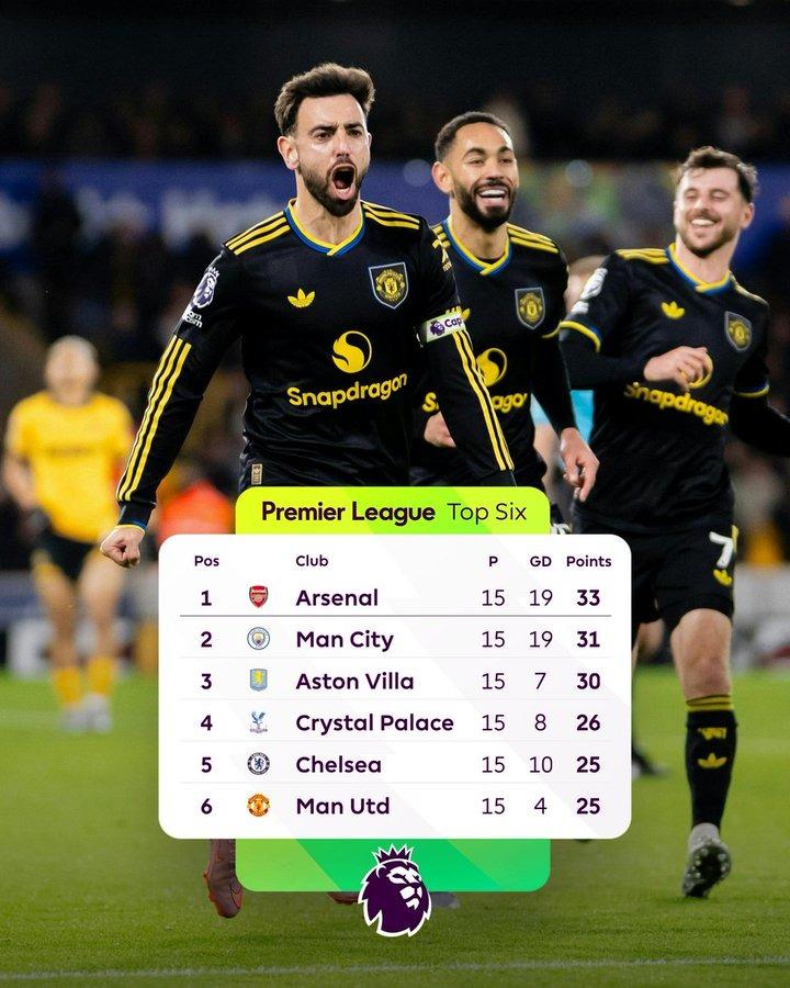 Ra sân trong trận đấu muộn nhất vòng, cả Wolves và Man United đều đặt mục tiêu là chiến thắng. Man United mở điểm ở phút 25 sau một tình huống lập bập do công của Bruno Fernandes. Phút 40, đội bóng đang xếp chót BXH có bàn gỡ 1-1 nhờ công của Bellegarde. Nhưng đó cũng là tất cả những gì đội chủ nhà có thể làm được trước sức mạnh của Man United. Sang hiệp 2, lần lượt Mbeumo, Mason Mount và Bruno Fernandes ghi bàn giúp cho Man United có chiến thắng đậm trên sân khách. Kết thúc vòng 15, Man United tiến lên vị trí thứ 6 với 25 điểm, cách top 4 đúng một trận hoà.