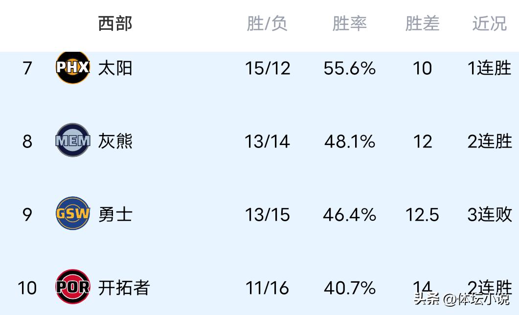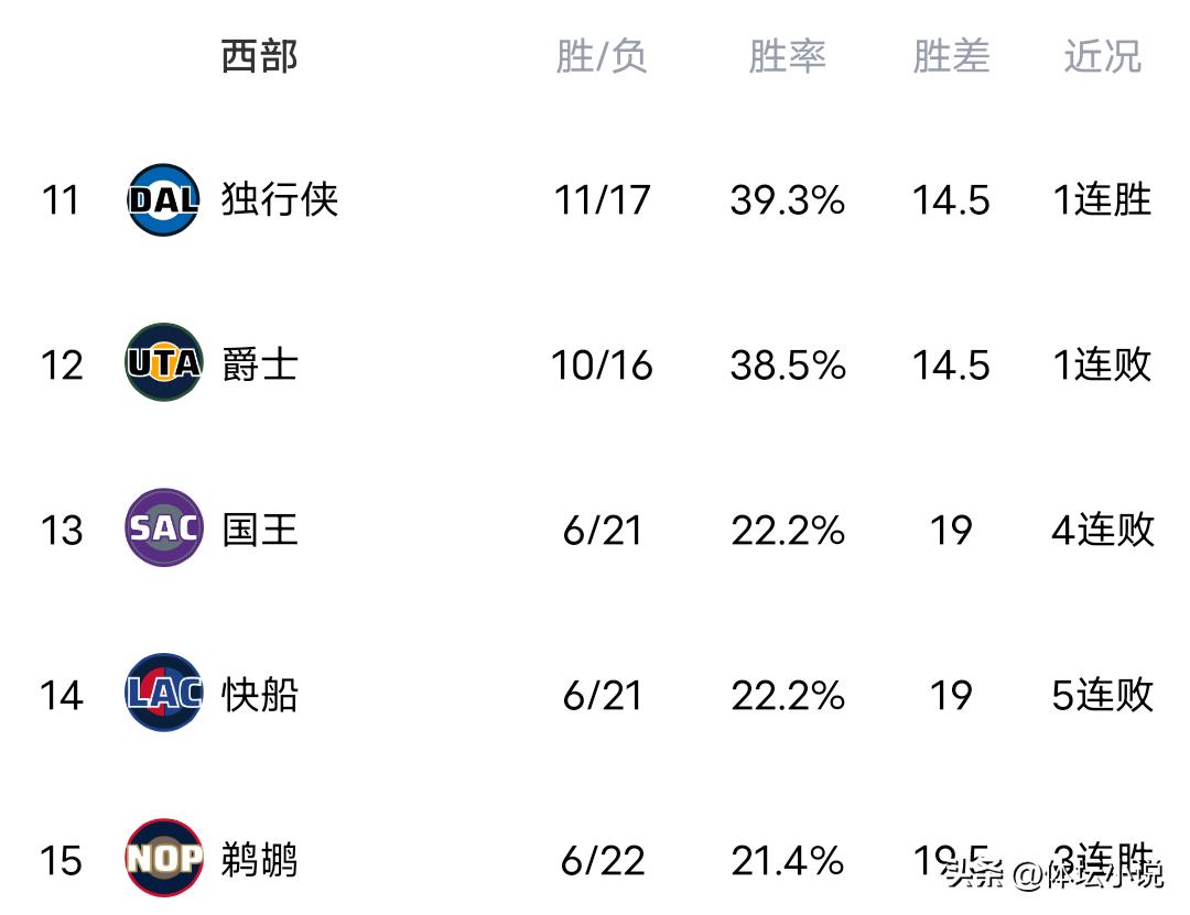 Vào ngày 20 tháng 12 theo giờ Bắc Kinh, giải NBA tiếp tục diễn ra, ngày hôm qua đã kết thúc nhiều trận đấu kịch tính, trong đó Clippers thua đậm nhà vô địch bảo vệ danh hiệu Thunder với tỷ số 101-122, đội yếu kém Wizards thua Spurs 94-119, Rockets gây sốc khi để thua Pelicans 128-133, Pistons thua sát nút Mavericks 114-116, Magic thua đội mạnh miền Tây Nuggets 115-126, Warriors thua Suns 98-99 trong trận đấu tấn công mãn nhãn, Lakers thắng Jazz 143-135 đầy khó khăn, Kings thua Blazers 133-134 trong pha ghi điểm quyết định, như vậy bảng xếp hạng mới nhất miền Tây đã được xác định, Thunder đứng đầu, Nuggets với chuỗi 6 trận thắng đứng thứ hai, Lakers thứ ba, Spurs thứ tư, Rockets thứ năm, Wolves thứ sáu!