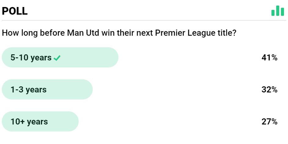 Cuộc khảo sát của báo Metro Anh cho thấy nhiều người ủng hộ dự đoán của Ferguson về thời gian Man United cần để vô địch, cho rằng phải mất từ 5 đến 10 năm mới đạt mục tiêu. Trước lời tiên đoán của Ferguson, HLV hiện tại Amolin không đồng tình, ông tin đội bóng có thể vô địch sớm hơn. Theo kế hoạch của Sir Jim Ratcliffe, Man United nên giành lại chức vô địch Ngoại hạng Anh vào dịp kỷ niệm 150 năm thành lập CLB năm 2028.