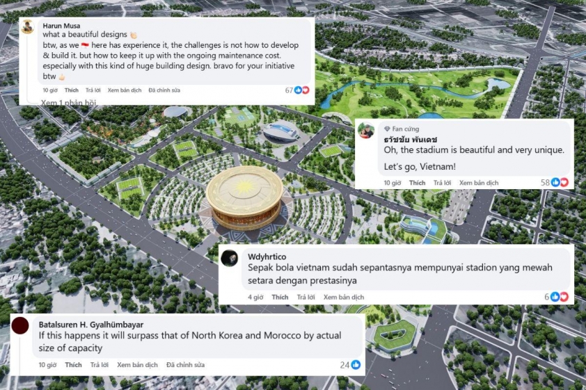 Ngay sau khi những hình ảnh phối cảnh đầu tiên của SVĐ Trống Đồng được lan truyền, trên fanpage ASEAN FOOTBALL, nhiều CĐV Đông Nam Á đã không giấu được sự ngưỡng mộ. Một CĐV Indonesia bình luận: “Thiết kế quá đẹp.”