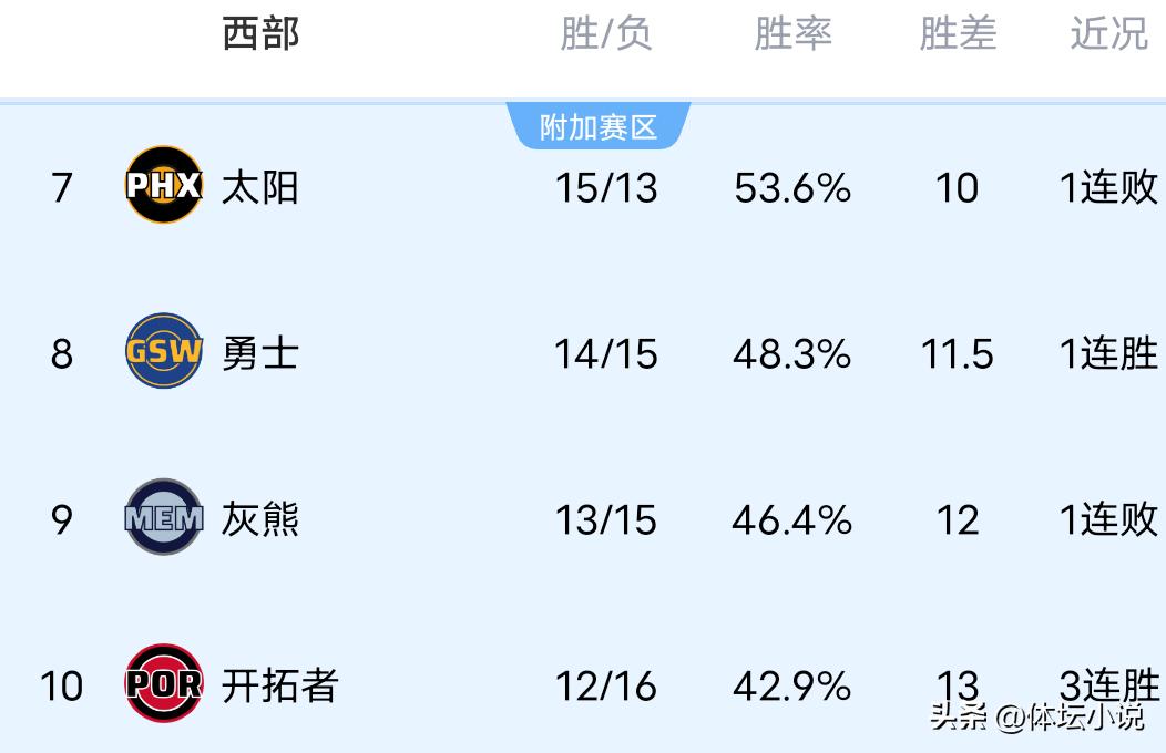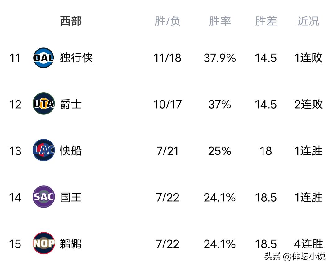 Vào lúc 22 tháng 12 theo giờ Bắc Kinh, giải NBA tiếp tục diễn ra với ba trận đấu kết thúc trong ngày hôm nay, trong đó Spurs tiến bước vững chắc khi dễ dàng đánh bại đội yếu Wizards với tỷ số 124-113, Bucks khởi đầu tốt nhưng sau đó thua ngược Wolves 100-103, Rockets gây sốc khi thua sát nút 124-125 trước đội cuối bảng Kings, do đó bảng xếp hạng miền Tây được cập nhật, Spurs đứng thứ hai, Wolves thắng liên tiếp 2 trận xếp thứ năm, Rockets tụt xuống vị trí thứ sáu!