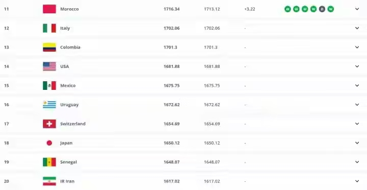 Trong top 20 bảng xếp hạng cuối năm của FIFA, châu Âu chiếm đến 10 đội, chiếm một nửa, không thể phủ nhận bóng đá châu Âu vẫn là trung tâm của bóng đá thế giới; Nam Mỹ có 4 đội, đều là những đội mạnh; Bắc Trung Mỹ và Caribe, châu Phi và châu Á mỗi khu vực có 2 đội, trong đó Iran đứng thứ hai mươi khiến một số người hâm mộ bất ngờ.
