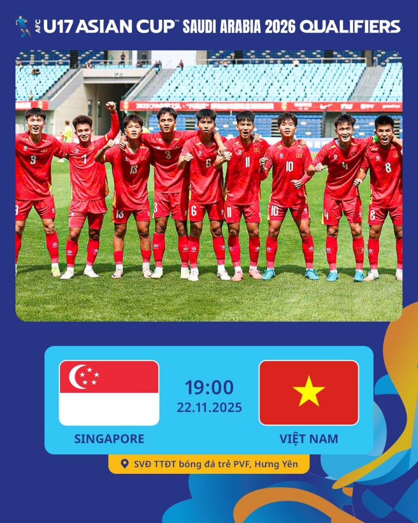 Chiến dịch săn tìm tấm vé dự Vòng chung kết U17 châu Á 2026 của Đội tuyển U17 Việt Nam chính thức khởi động tại bảng C. Thầy trò HLV Cristiano Roland sẽ phải vượt qua các đối thủ Malaysia, Singapore, Hồng Kông (Trung Quốc), Quần đảo Bắc Mariana và Ma Cao (Trung Quốc). Trận đấu mở màn của U17 Việt Nam sẽ là cuộc chạm trán với U17 Singapore vào ngày 22/11, diễn ra tại sân vận động PVF.