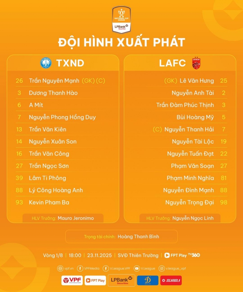 Đội hình ra sân Nam Định vs Long An: