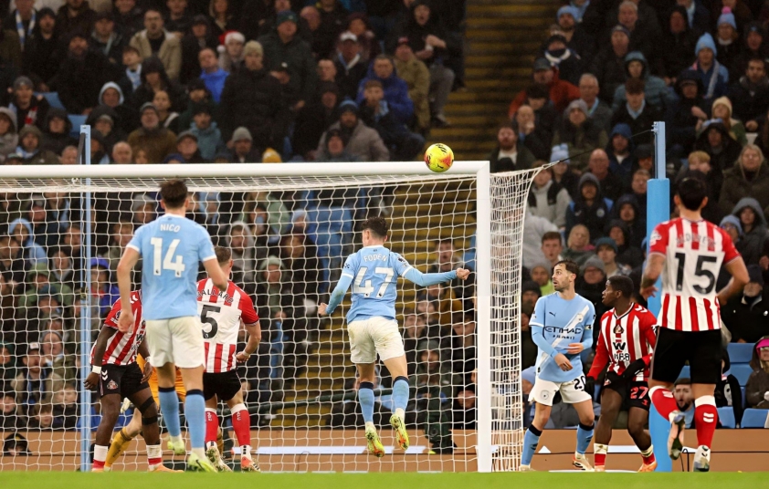 Bước ngoặt của hiệp đấu đến ở phút 65, khi Phil Foden băng vào đánh đầu dũng mãnh từ đường tạt chuẩn xác của Rayan Cherki, gia tăng cách biệt cho Man City.
