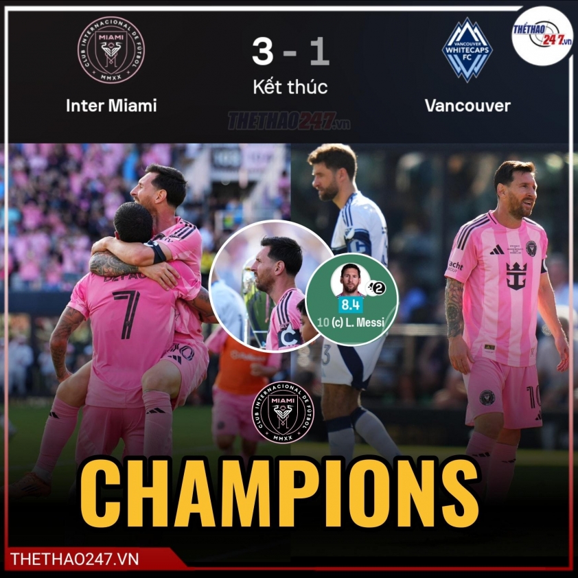 Trong trận chung kết, Lionel Messi tiếp tục sắm vai ngôi sao sáng nhất. Chính đường căng ngang của anh khiến bóng chạm cột trước khi Tadeo Allende ập vào mở tỷ số cho Miami. Vancouver vùng lên mạnh mẽ nhưng Messi lập tức đáp trả bằng pha cướp bóng và kiến tạo đẳng cấp để Rodrigo De Paul nâng tỷ số lên 2-1. Cuối trận, một đường chuyền khác của Messi mở ra bàn ấn định 3-1, khép lại một hành trình kỳ diệu.